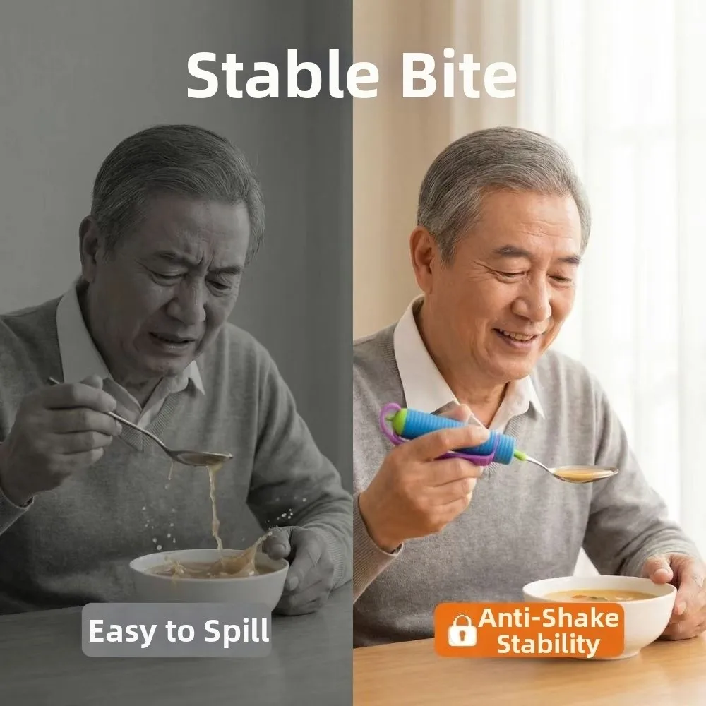 Set di 2 Utensili Antiscivolo per Anziani, Cucchiaio e Forchetta Adattivi Regolabili Anti-Vibrazione, Sicuri e Facili da Usare