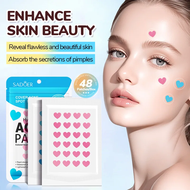 48 cerotti per l'acne a forma di cuore: coperture idrocolloidali invisibili per brufoli con protezione che assorbe l'olio per macchie quotidiane e imperfezioni