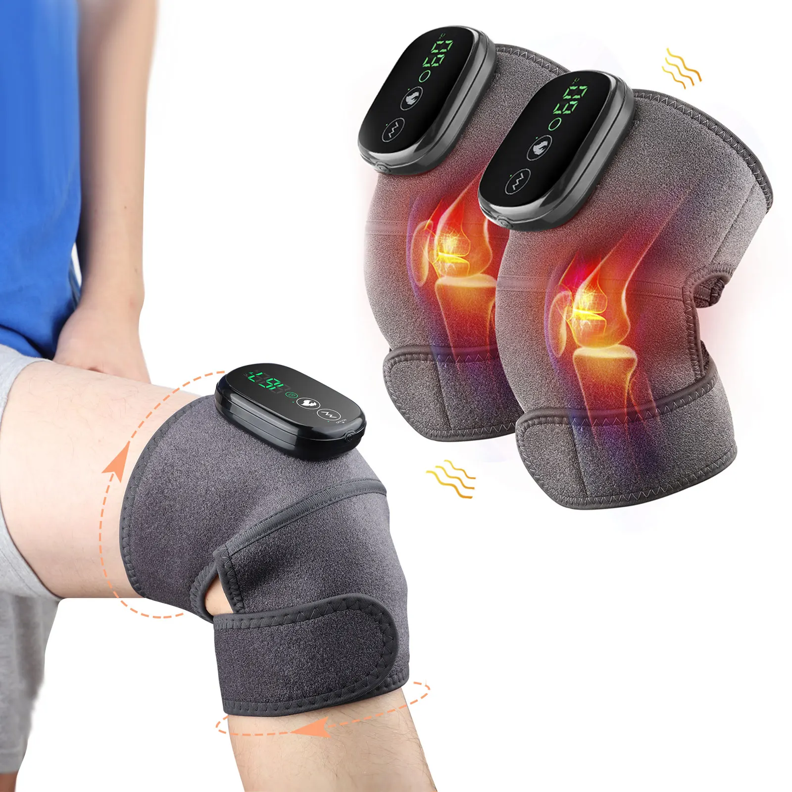Massaggio vibrante Ginocchiera Cintura di supporto riscaldante Spalla 3 in 1 Gomito Gomito Calmo Sollievo dall'affaticamento Impacco caldo Macchina Massaggiatore Pad
