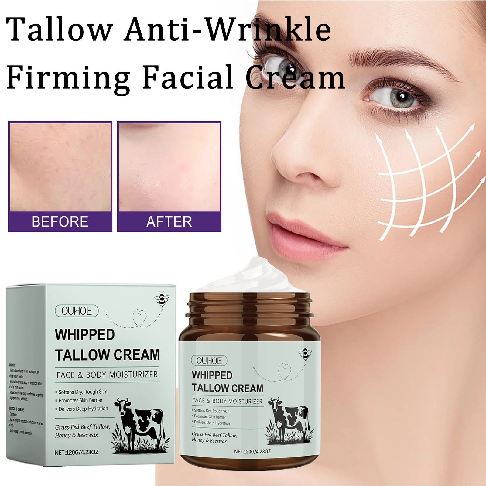 Balsamo Tallow montata Rimozione delle rughe Linee sottili Anti invecchiamento Illumina Migliora la secchezza Sbiancamento Nutrire Crema idratante viso