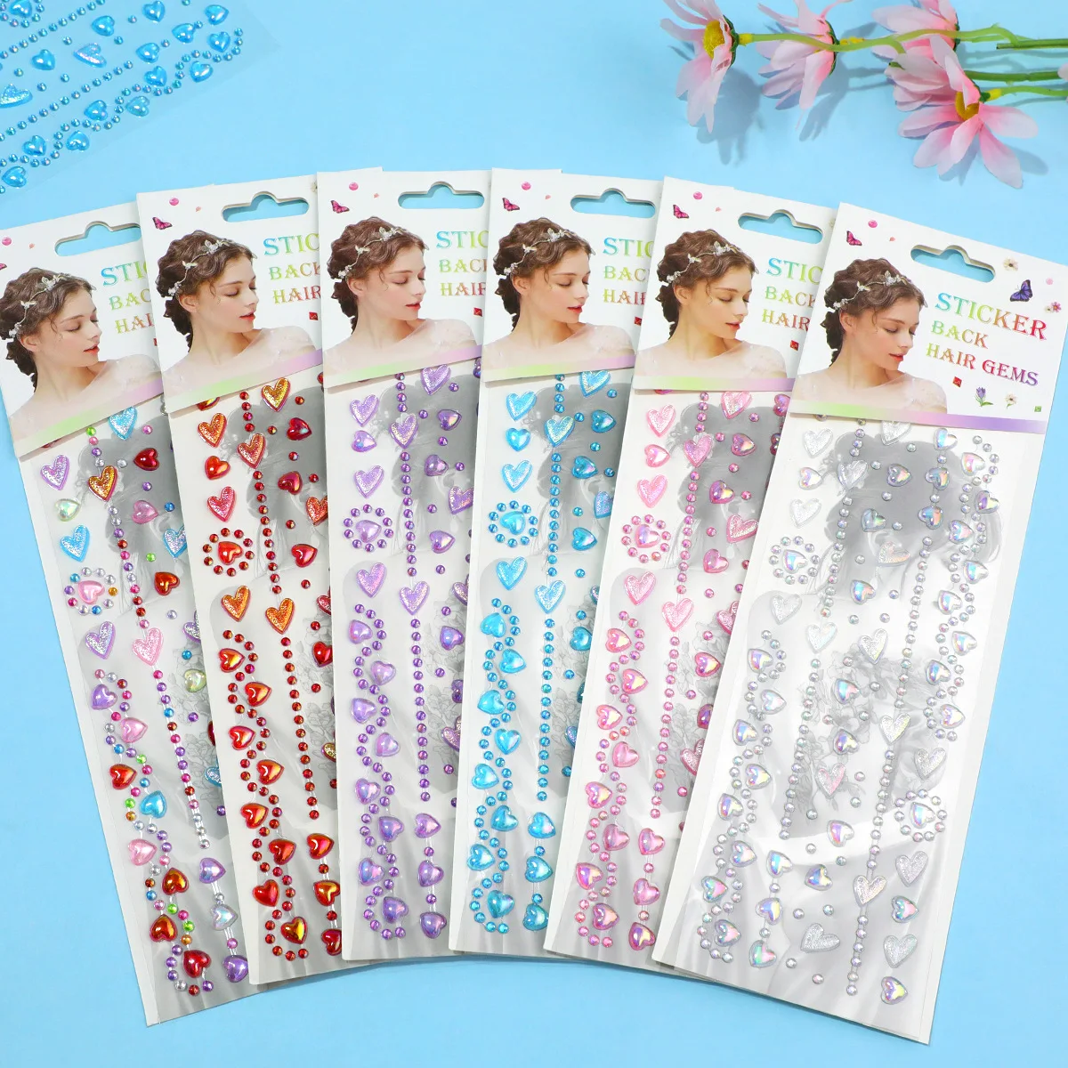 Nuovo adesivo colorato a forma di cuore con strass, adesivo decorativo integrato con colla, diamante decorativo super scintillante per trucco fatato