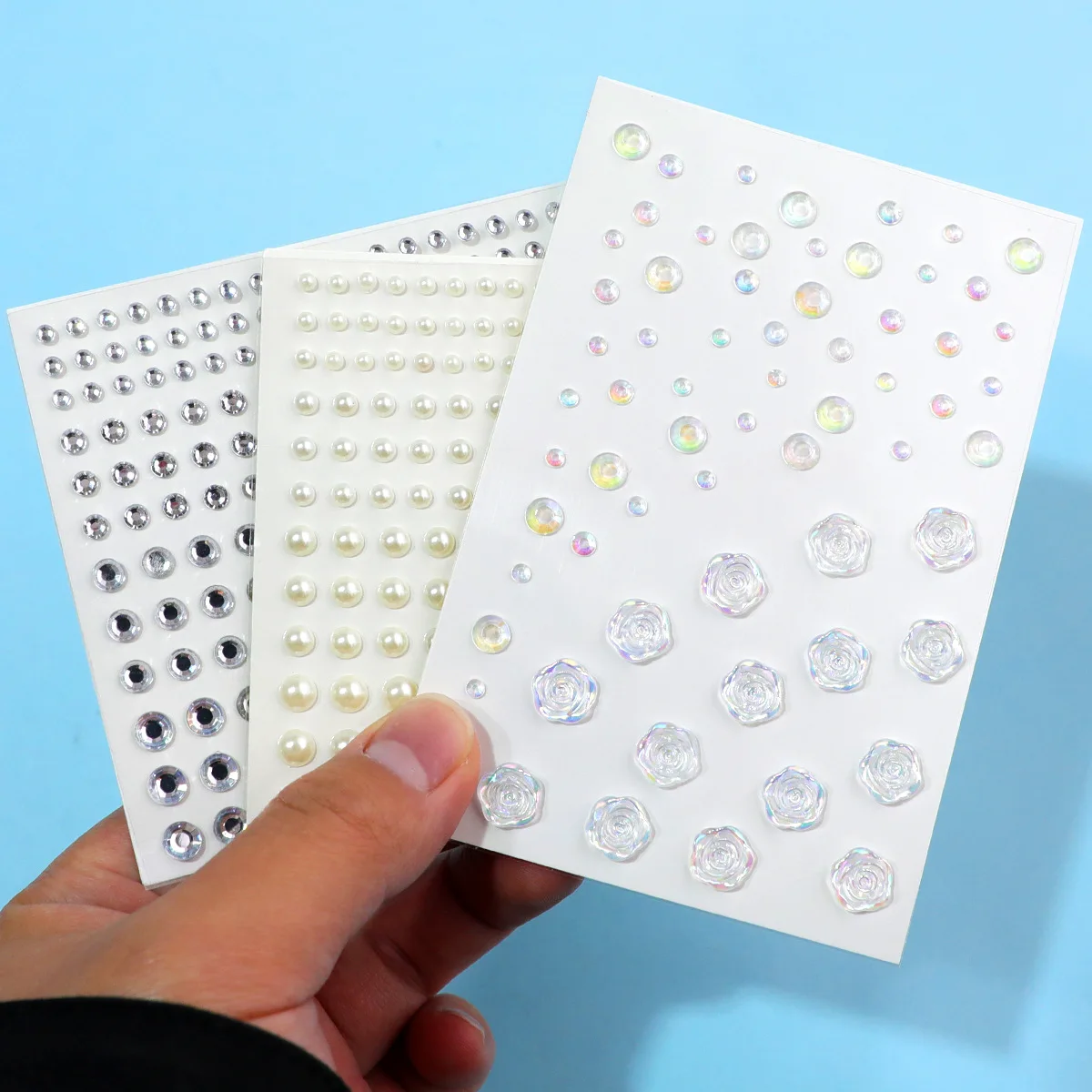 Adesivi per trucco occhi e viso per bambini, con strass brillanti a forma di goccia, gioielli per il viso, strass a forma di rosa, perle e strass da palcoscenico per sopracciglia