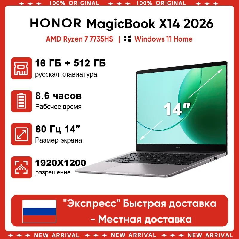 【RU Express】HONOR MagicBook X14 Laptop 2026 14" Radeon 680M AMD R7 7735HS 16GB 512GB Notebook Ultrabook Windows 11 Home
