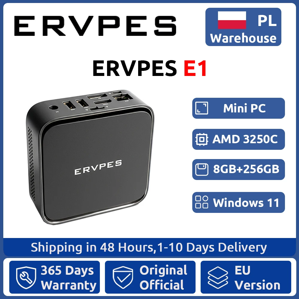 Mini PC ERVPES E1 con AMD Ryzen 3 3250C, 8GB DDR4, 256GB SSD, Windows 11 Pro, Wi-Fi Dual-Band, BT5.2, Computer Desktop per Ufficio