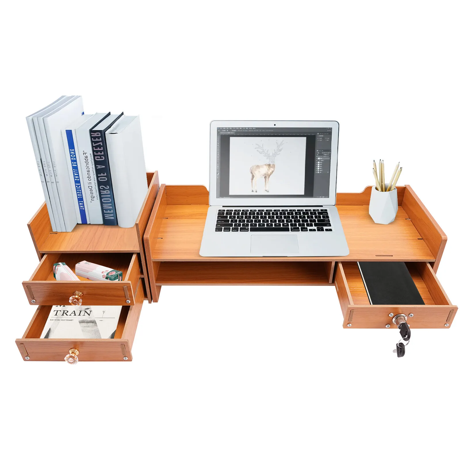 Supporto per Monitor, Mensola per Computer con Cassetto in Legno, Supporto per Monitor da Scrivania, Adatto per Studio, Ufficio, Organizzazione Scrivania legno
