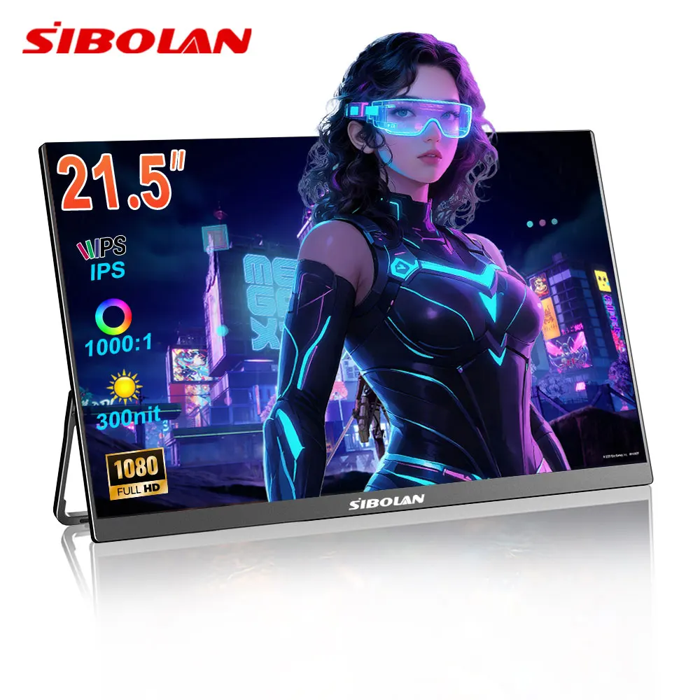 Monitor Portatile Sibolan 21.5 Pollici 1080P 100% sRGB USB C HDMI HDR con Supporto Schermo IPS Estensore per Smart Home e Gaming