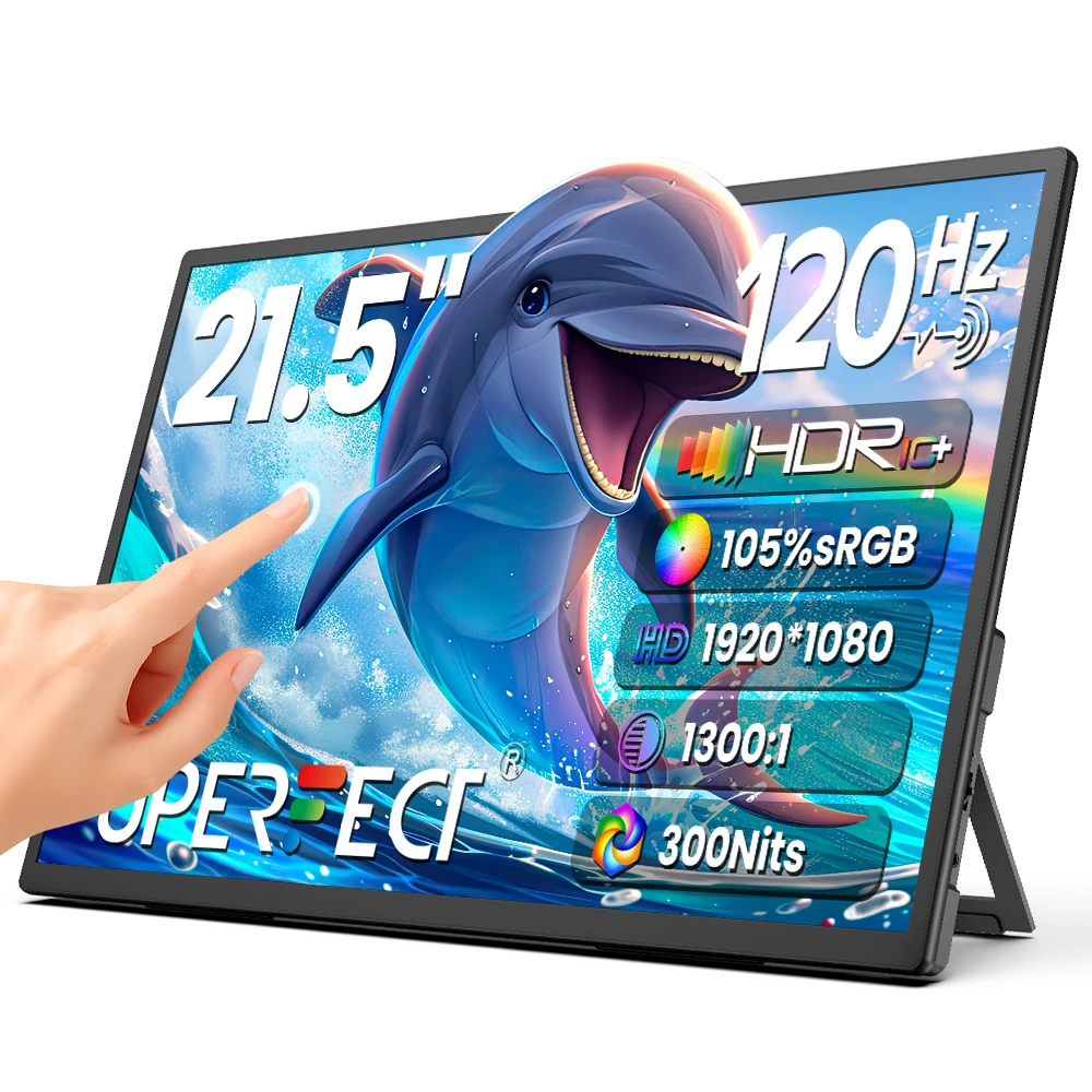 Monitor Portatile Touch UPERFECT da 21,5 Pollici, 120Hz, 1080P, Ultra-Sottile, Senza Cornice, Display FHD HDR, Secondo Schermo da Viaggio per Laptop e PC