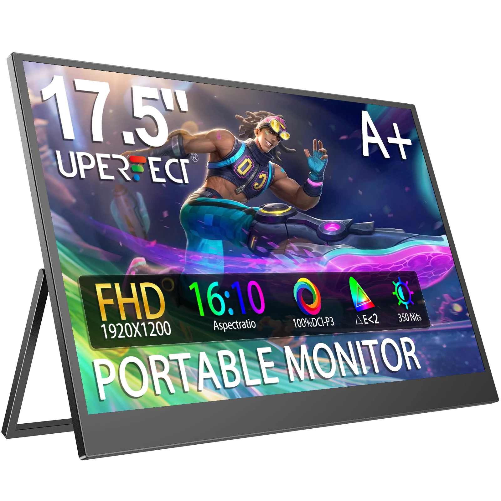 UPERFECT 17.5 "Monitor Portatile 1920*1200 Cavalletto Incorporato HDMI USB C Gioco Del Computer Portatile Schermo Esterno Per PC Mac Telefono Xbox PS5