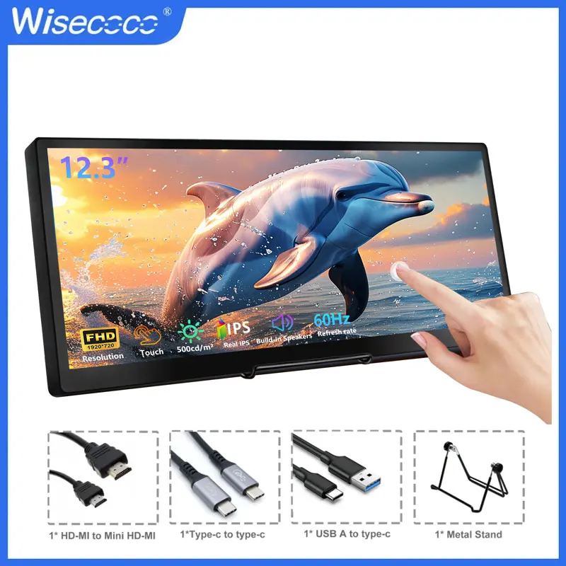 Monitor Secondario Touchscreen da 12,3 Pollici, Display IPS Allungato 1920*720, USBC Portatile per Laptop PC, Temperatura Aida64 GPU CPU