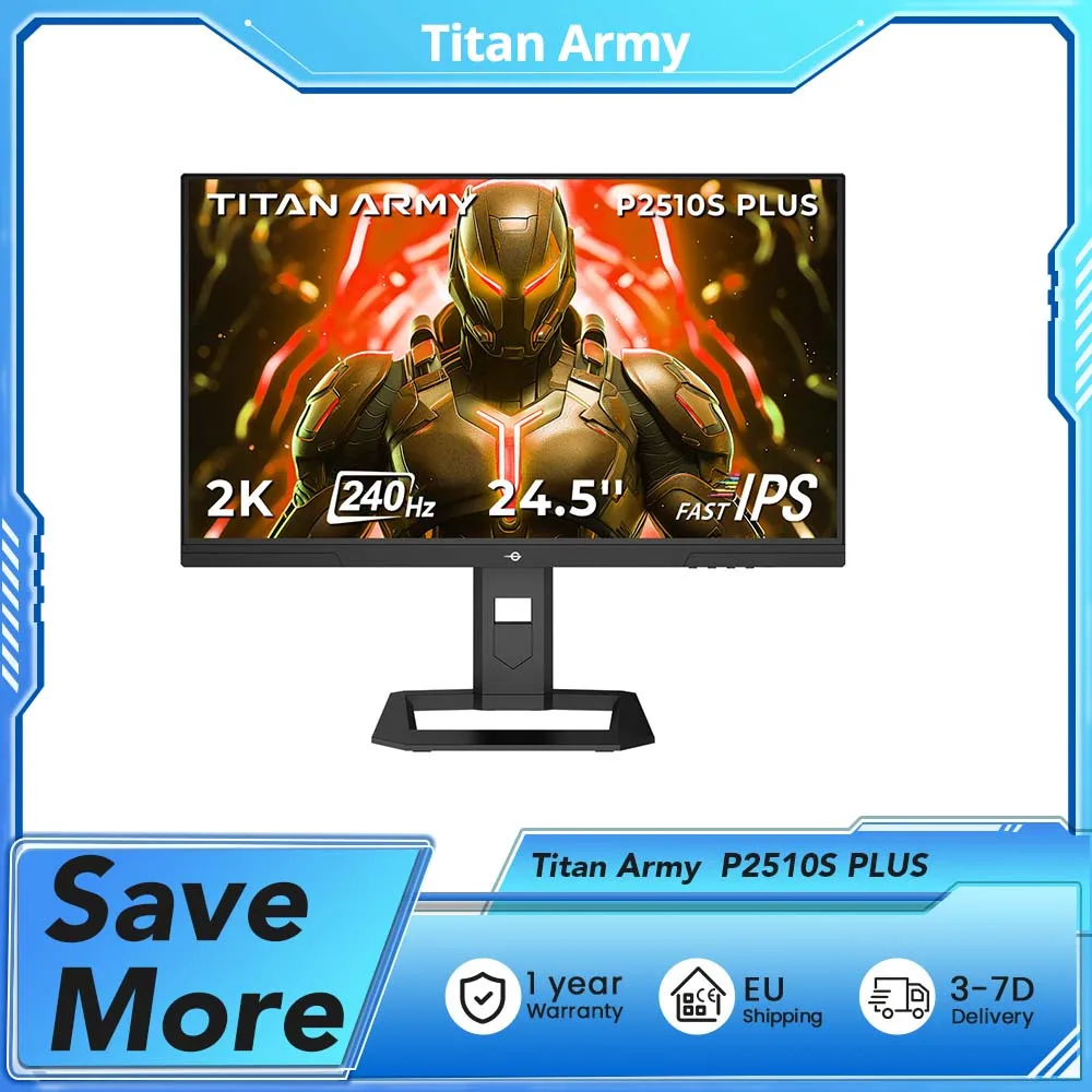 TITAN ARMY P2510S PLUS Monitor da gioco piatto 16:9,24,5" Fast IPS QHD 240Hz, risoluzione 2560×1440, 178 ° Angolo di visione, VESA 100×100