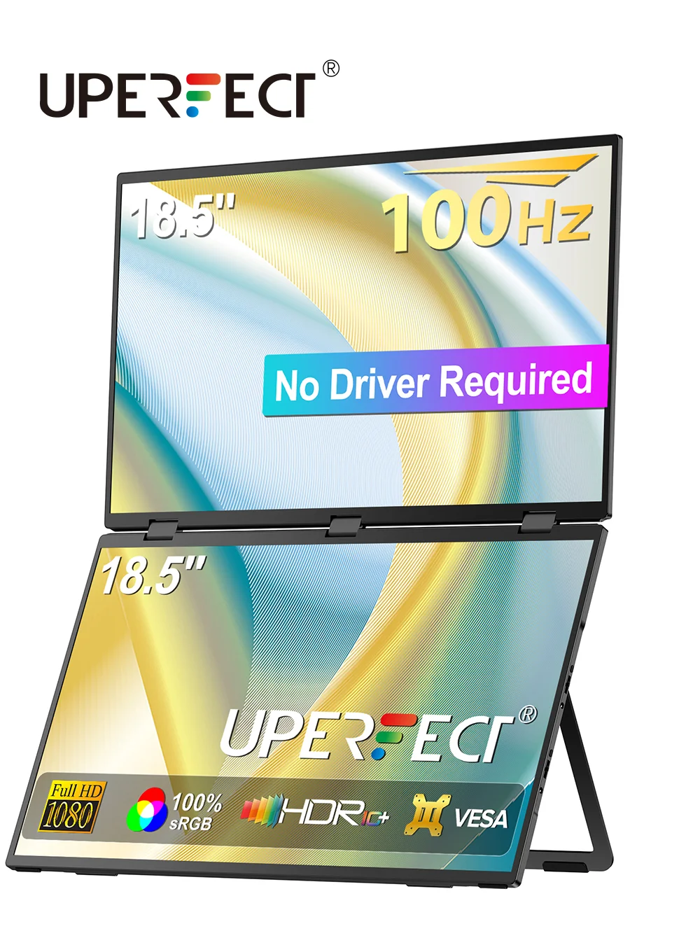 Monitor impilabile UPERFECT 100Hz senza driver, doppio schermo pieghevole da 18,5 pollici per laptop con USB-C e Mini HDMI per PC, Mac, Surface, telefono