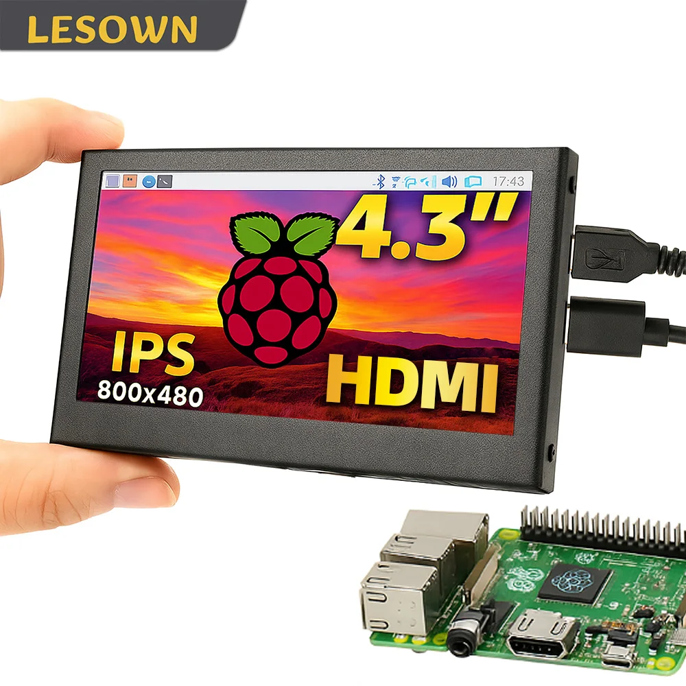 LESOWN Mini Monitor portatile da 4,3 pollici 800x480 IPS Display USB secondario Monitor ausiliario Design compatto per lavoro di gioco su PC portatile