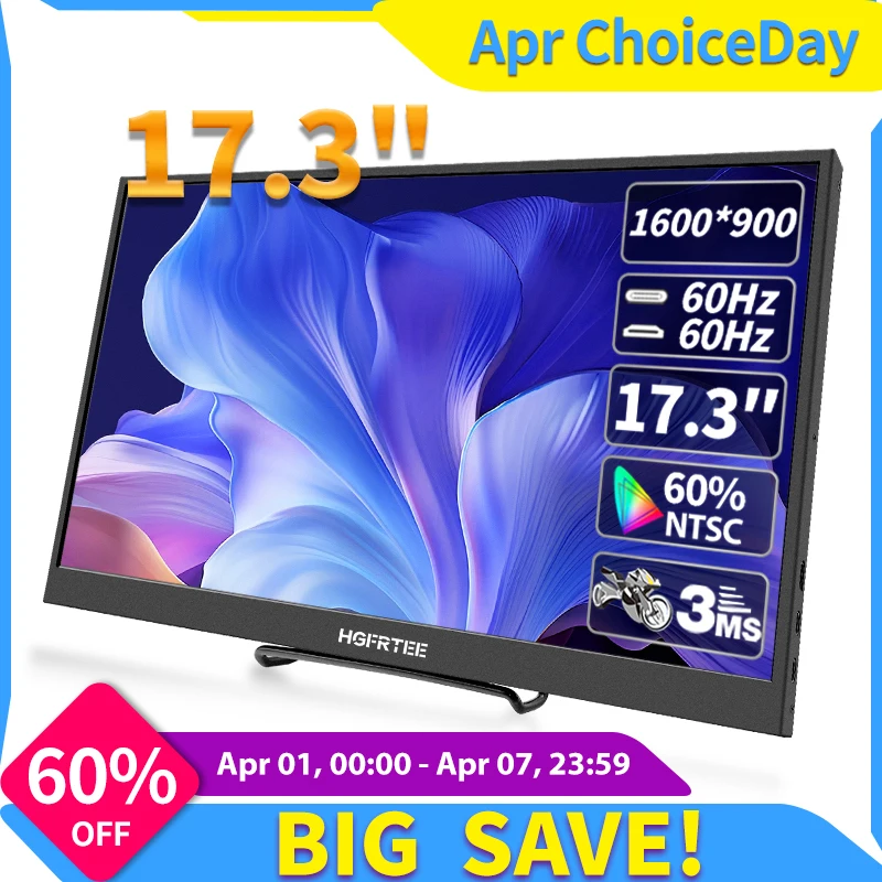 HGFRTEE Monitor portatile da 17,3 pollici Schermo esterno Display per PC da gioco Compatibile con HDMI per laptop Switch xb