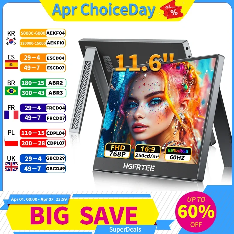 Monitor portatile da 11,6 pollici HGFRTEE - Schermo esterno per laptop con supporto e connessione USB-C per multitasking e gaming