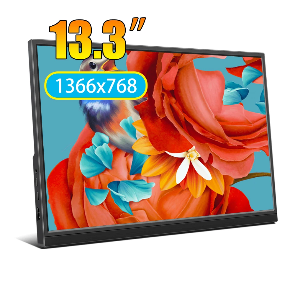 Monitor Portatile da 13,3 Pollici, Risoluzione 1366 * 768, Frequenza di Aggiornamento 60Hz, Display Leggero per Viaggi d'Affari e Gaming