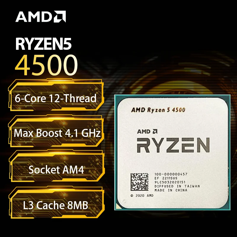 Processore Desktop AMD Ryzen 5 4500 a 6 Core e 12 Thread, 4.1 GHz Max Boost, Sbloccato, Socket AM4, CPU per PC Gaming, senza ventola