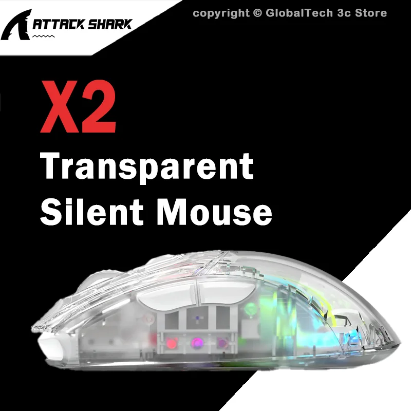 ATTACK SHARK X2 X2pro Mouse da gioco wireless silenzioso Tri-Mode 2.4G Bluetooth USB-C Trasparente RGB PixArt 3212 Design ergonomico