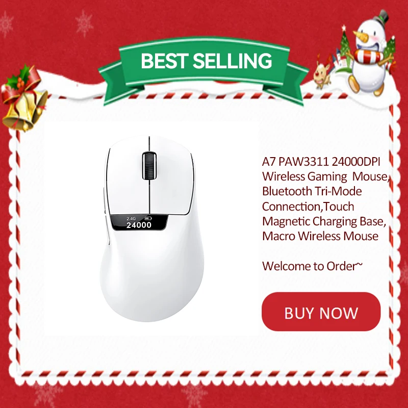 Mouse wireless A7 PAW3311 24000 DPI, connessione Tri-Mode, base di ricarica magnetica, mouse da gioco macro