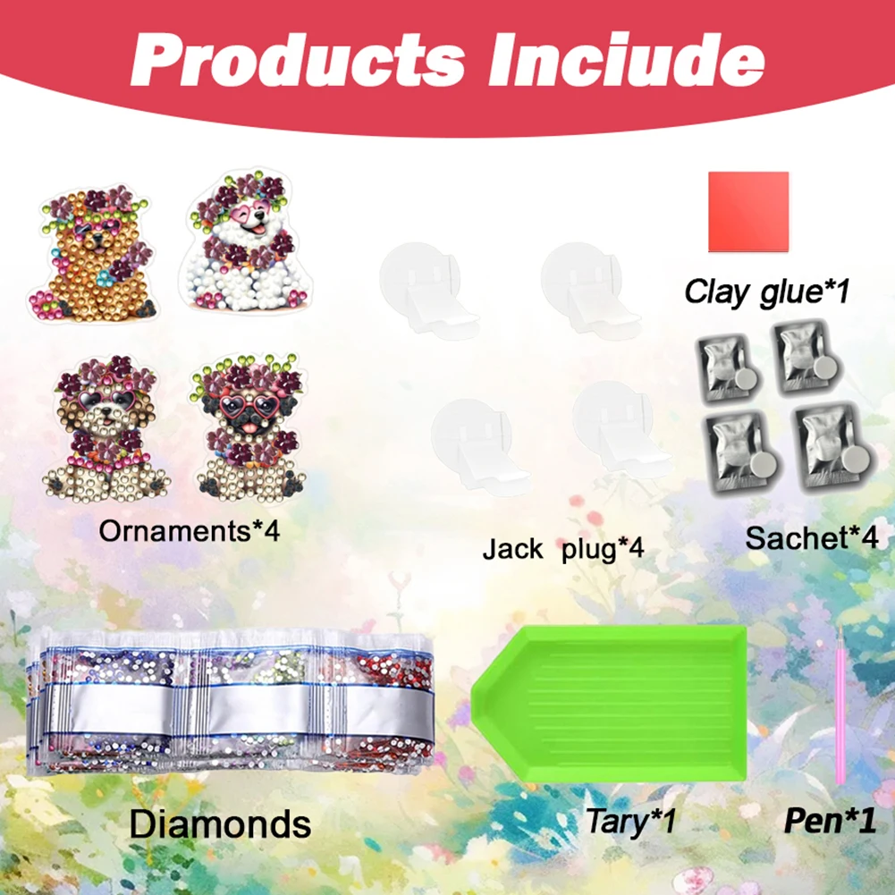Fiore Animale 4 Pz/set Pittura Diamante Fai da Te Decorazione di Interni Auto Fascino Diamante Deodorante per Auto Auto Aria Condizionata Presa Clip