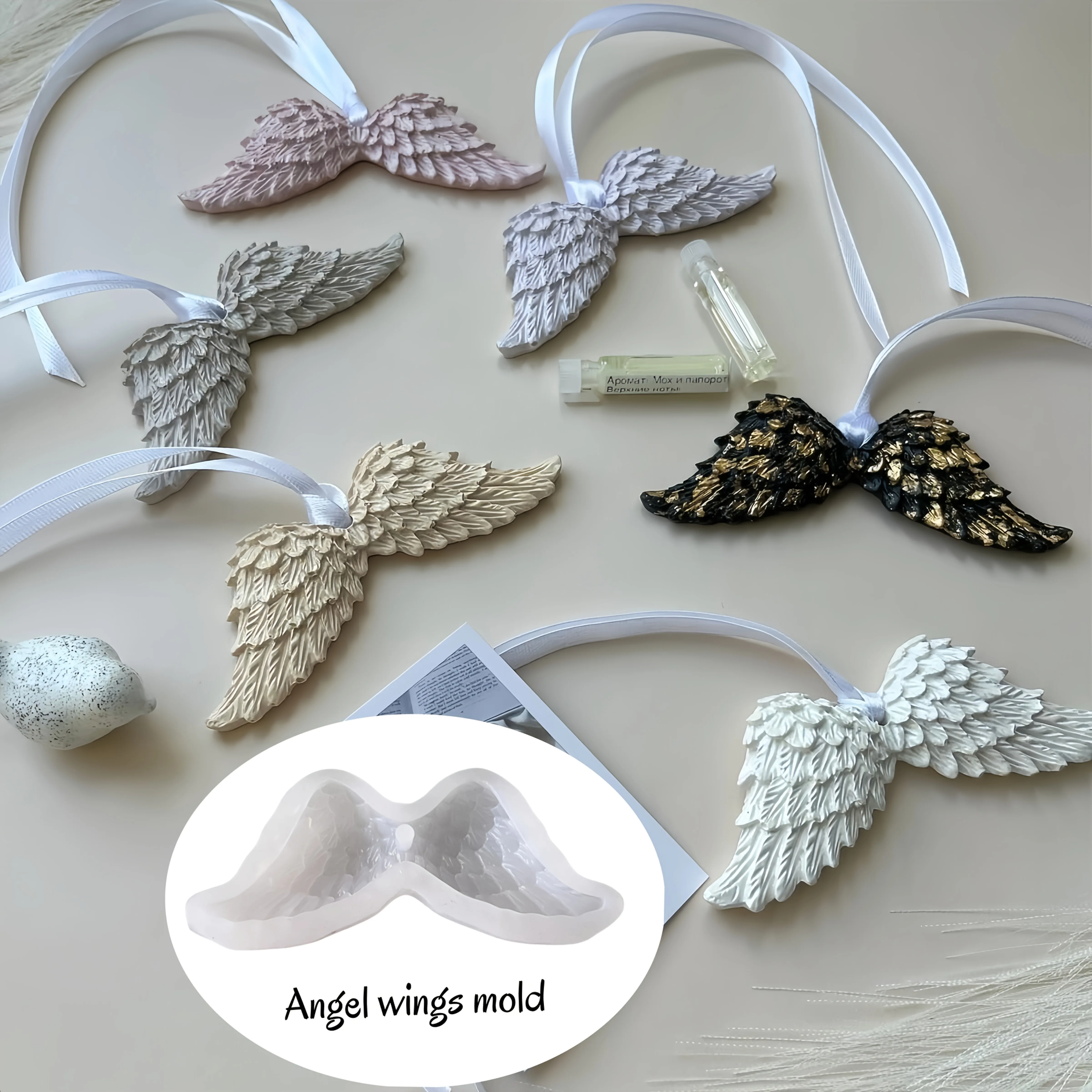 Stampo in silicone con ciondolo ali d'angelo 1pc, stampo per appendere deodorante per auto, stampo per colata in resina, stampo in gesso per pietra diffusore