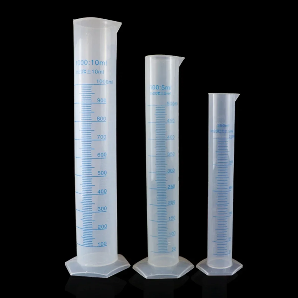 10ml 25ml 50ml 100ml 250ml bianco/blu scala linea graduata Labrotary plastica PP liquido mearsiing cilindro con beccuccio insegnamento
