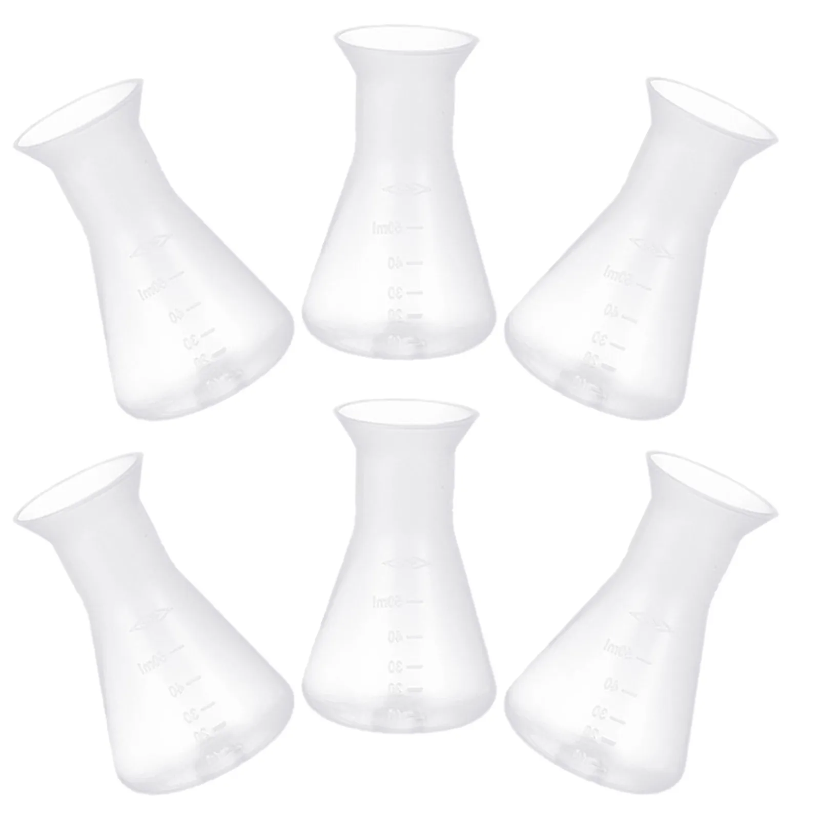 Set di 6 Fiaschette Erlenmeyer in Plastica da 50ml con Bocca Larga, Forniture per Laboratori Scolastici, Esperimenti di Chimica