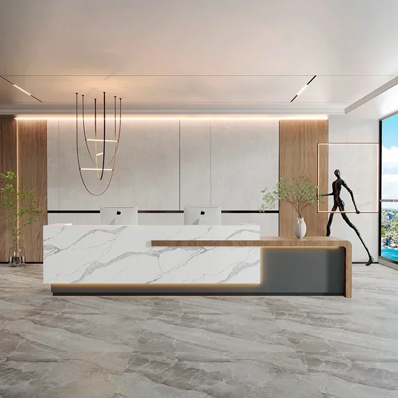 Scrivanie per ufficio per computer Tavolo da parete pieghevole Corridoio Bancone reception Caffè Distillazione Banco reception per computer Mobili alla moda