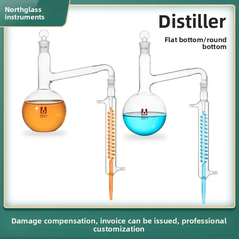 1801 Distillatore a fondo tondo piatto 250/500/1000/2000ml Condensatore a serpente interamente in vetro