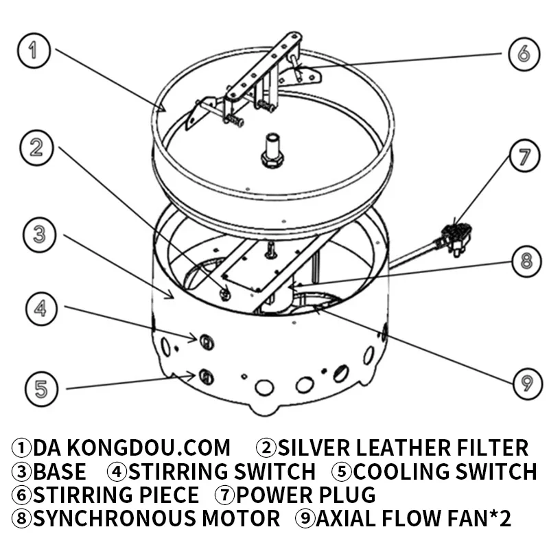 Piastra di raffreddamento del dispositivo di raffreddamento del dispositivo di raffreddamento dell'acciaio inossidabile ad alta aspirazione della macchina di raffreddamento del chicchi di caffè di piccole dimensioni per uso domestico 15r/Min 94W con filtro