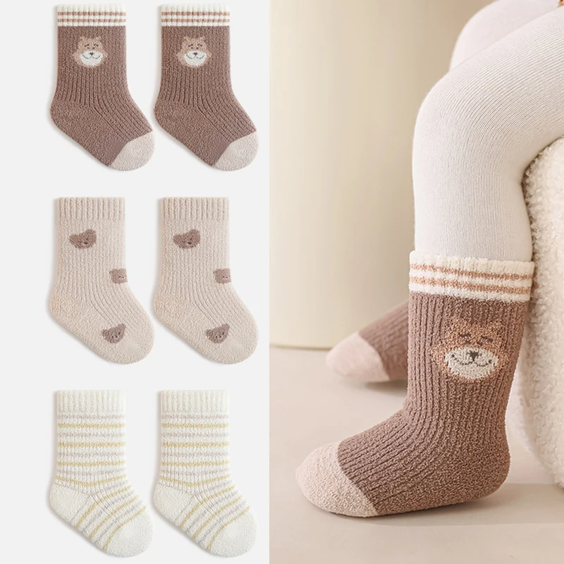 Calzini spessi per bambini Calzini per bambini morbidi e caldi per la pelle Calzini per bambini invernali per ragazzi/ragazze stampati carini 3 paia di calzini in maglia per neonati