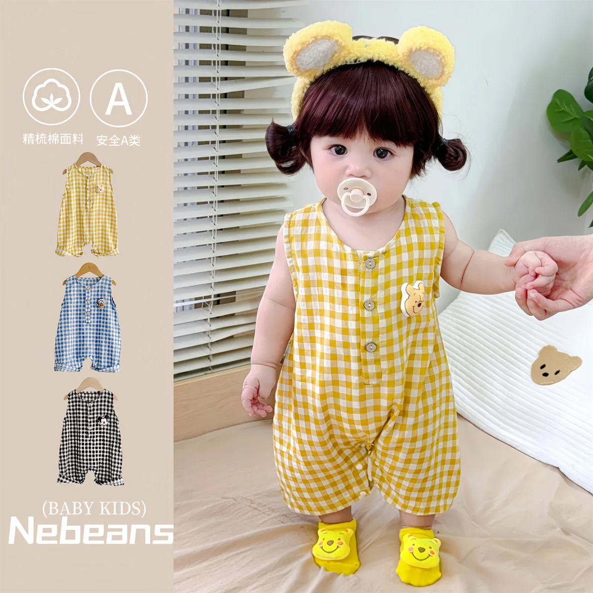 Tutina Estiva per Neonato Maschio con Ricamo Baseball, Vestibilità Comoda, Collo Tondo, Senza Maniche, Abbigliamento per Bambini