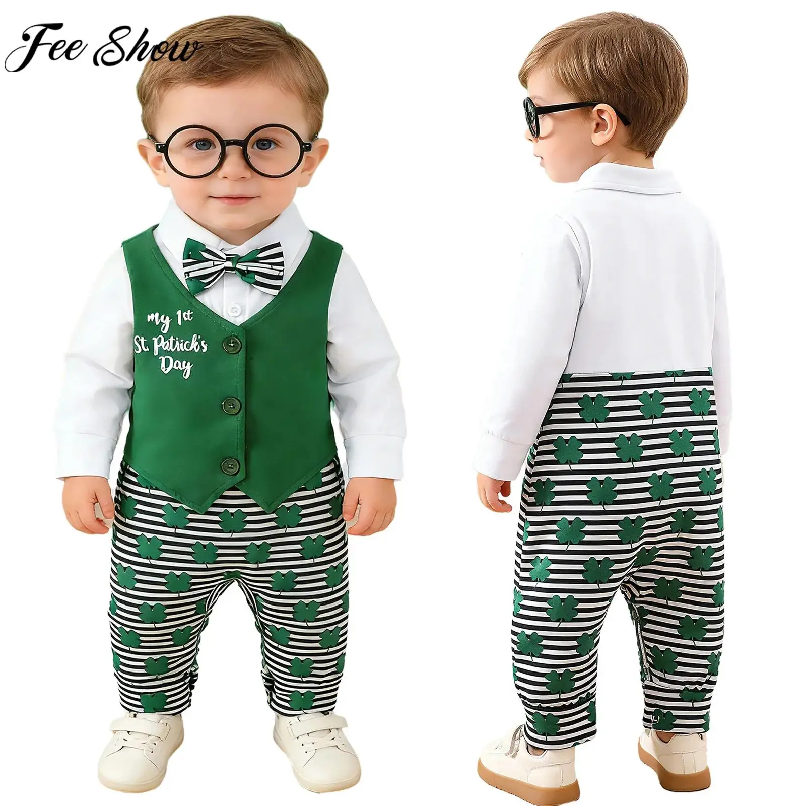 Costume da Gentiluomo per Neonati per la Festa di San Patrizio, Compleanno, Carnevale, Tutina a Maniche Lunghe con Bottoni, Papillon e Gilet