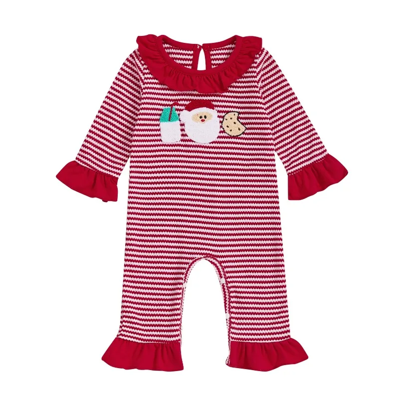2025 Neonato Vestiti Di Natale Neonati maschi Ragazze Carino Babbo Natale Pizzo Splicing Strisce Pagliaccetto Kawaii Tute 0-18M