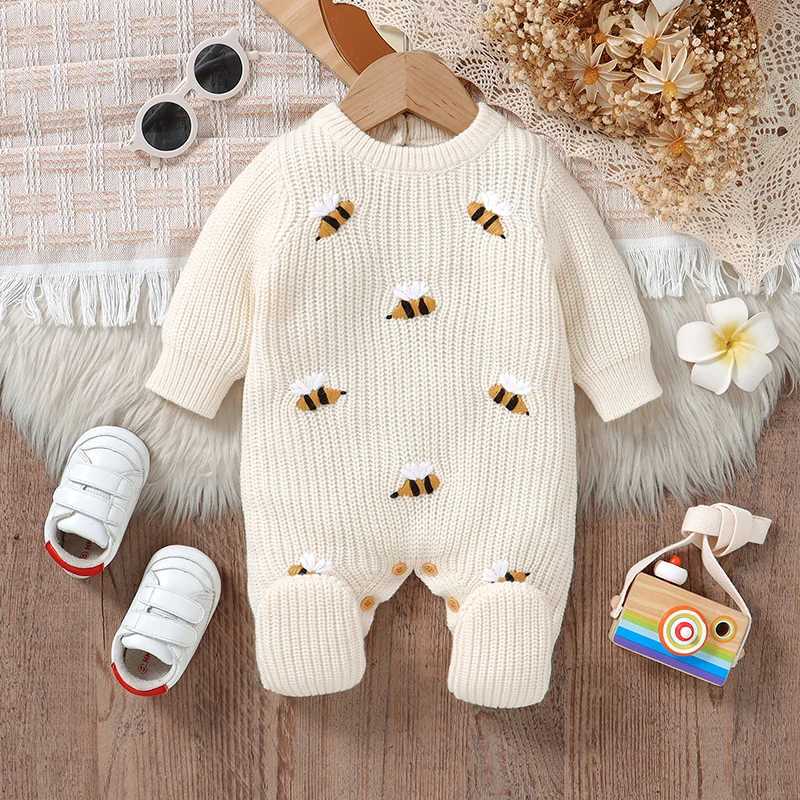 Pagliaccetti per bambini Vestiti 0-18m Autunno Inverno Manica lunga lavorata a maglia Neonati maschi Ragazze Tute beige One Pieces Infant Abiti unisex