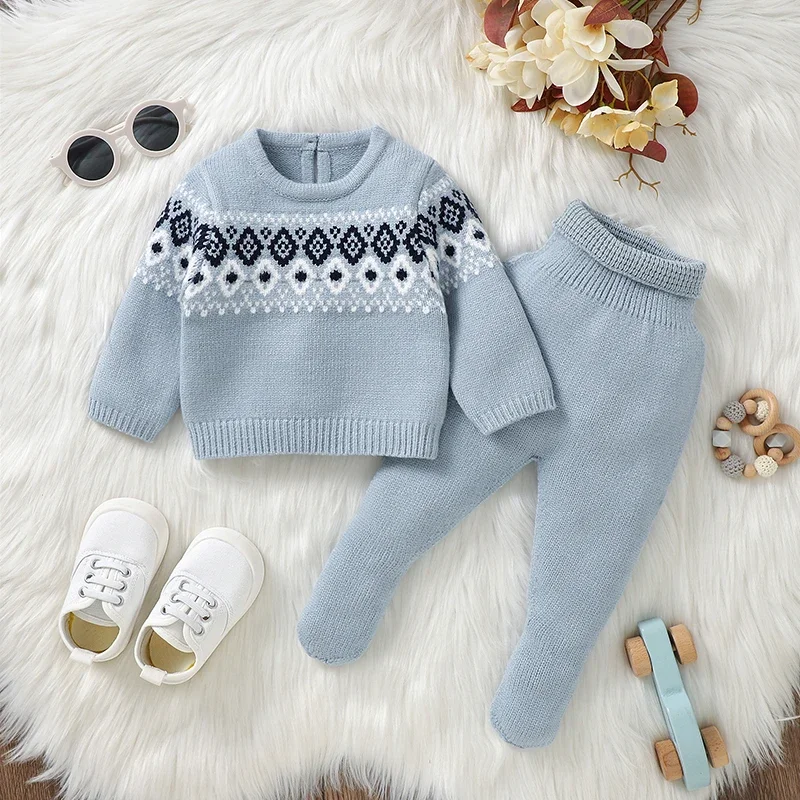 Set di vestiti per bambini Maglia per neonato Maglione + Pantaloni 2 pezzi Moda a righe Autunno Ragazza Ragazzo Pullover + Pantaloni Avvolgere il piede Caldo 0-9M