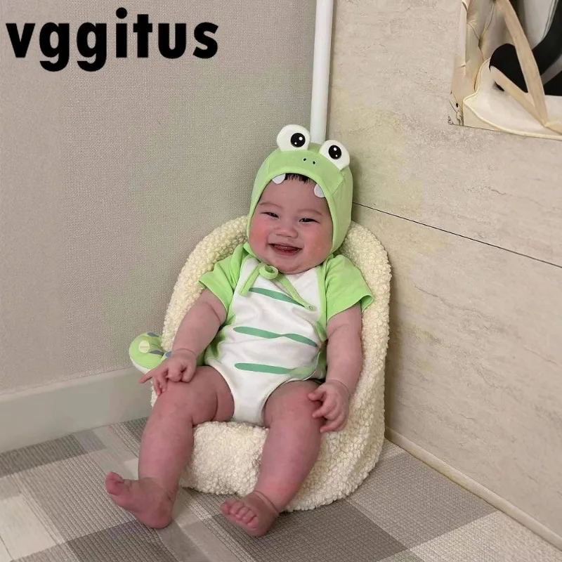 Neonato Estate Neonata Ragazzo Cartoon Dinosauro Body con cappello Infantile Manica corta Abbigliamento Carino Verde Tuta casual A8107
