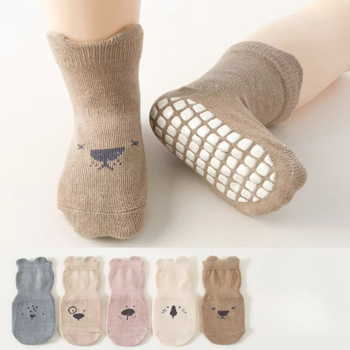 3/5 paia di calzini casual traspiranti per ragazzi e ragazze bambini attività al coperto calzini da pavimento antiscivolo con motivo animali adorabili per bambini