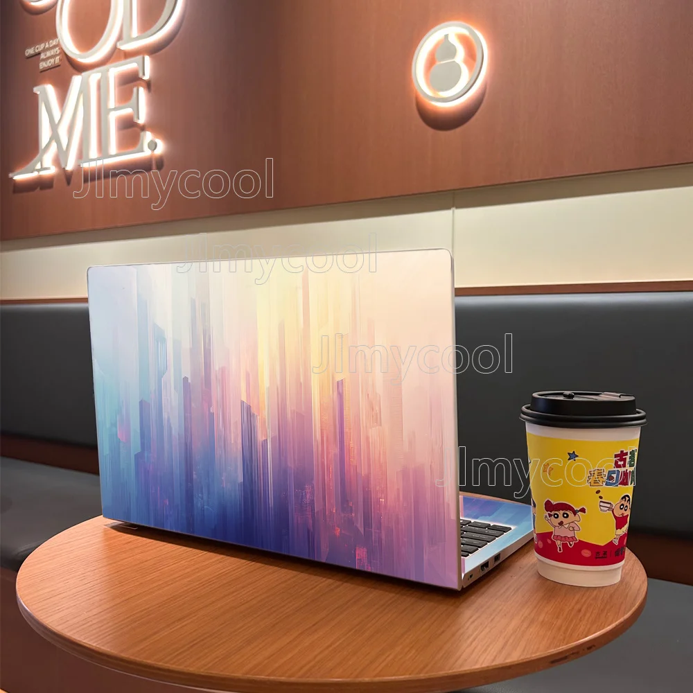 Adesivi per laptop impermeabili con motivo moderno di edifici a più piani dipinti a graffiti, 2 pezzi, universali per netbook