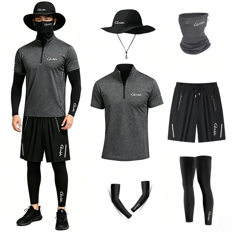 Completo da Pesca Estivo da Uomo 4 Pezzi, Set in Seta Ghiaccio Traspirante, Maglietta a Maniche Corte ad Asciugatura Rapida, Protezione Solare, Abbigliamento da Pesca 6 Pezzi