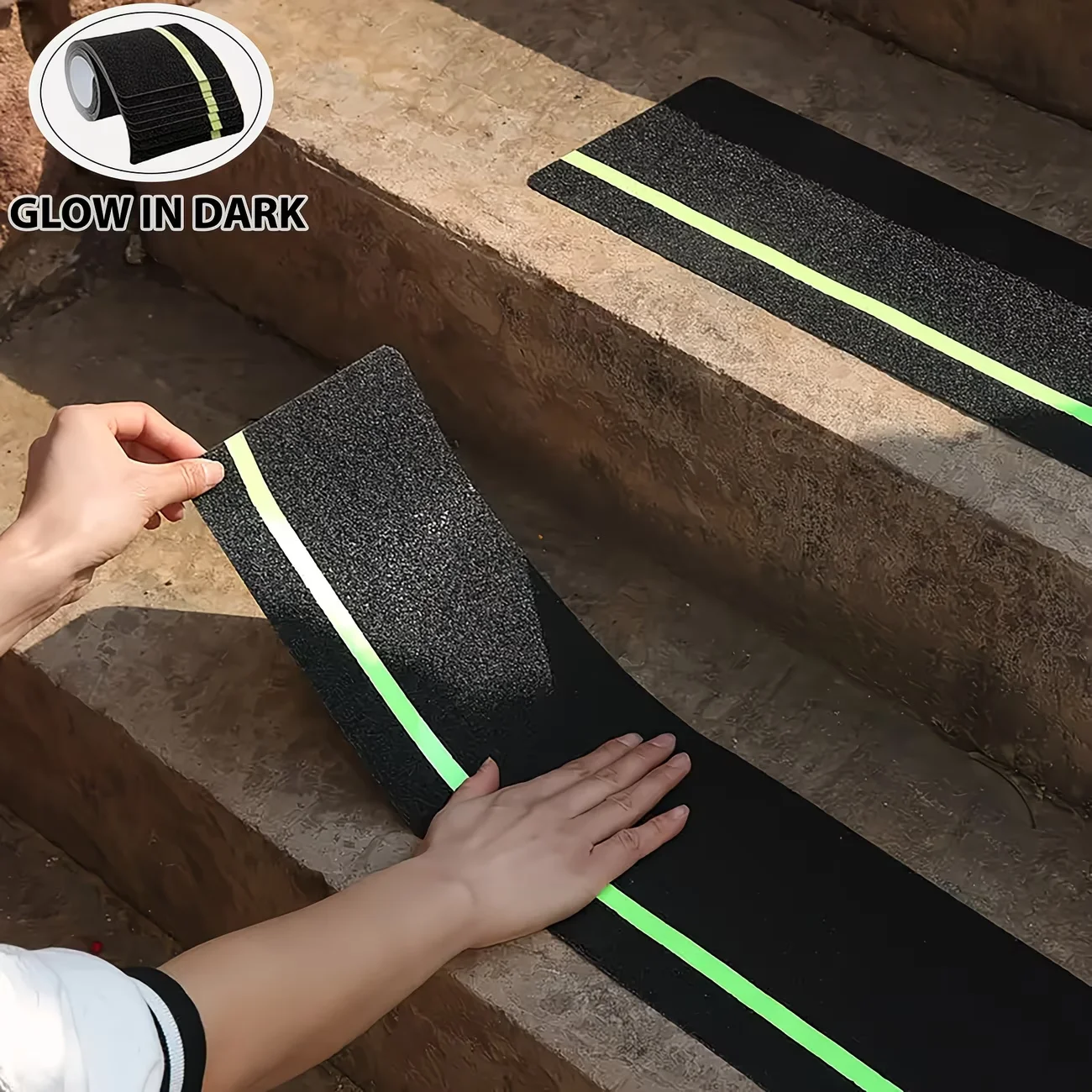Nastro Antiscivolo con Strisce Fluorescenti, Nastro ad Alta Aderenza per Gradini, Scale Esterne e Seminterrati