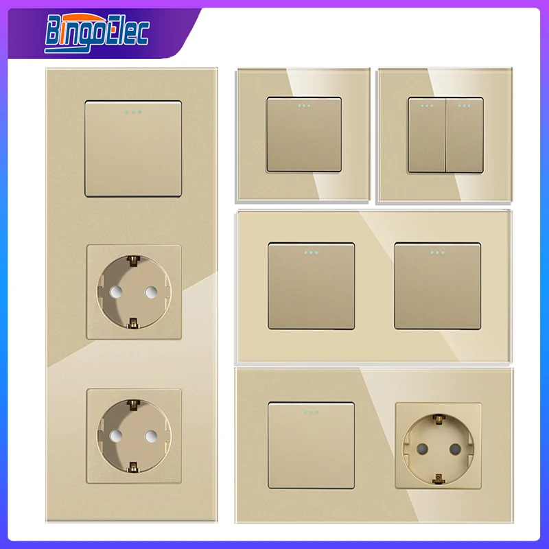 Bingoelec Pannello in cristallo dorato 1 2 3Gang 1 Passaggio a 2 vie Interruttore on/off Interruttore della luce Interruttore a parete per scale con presa UE