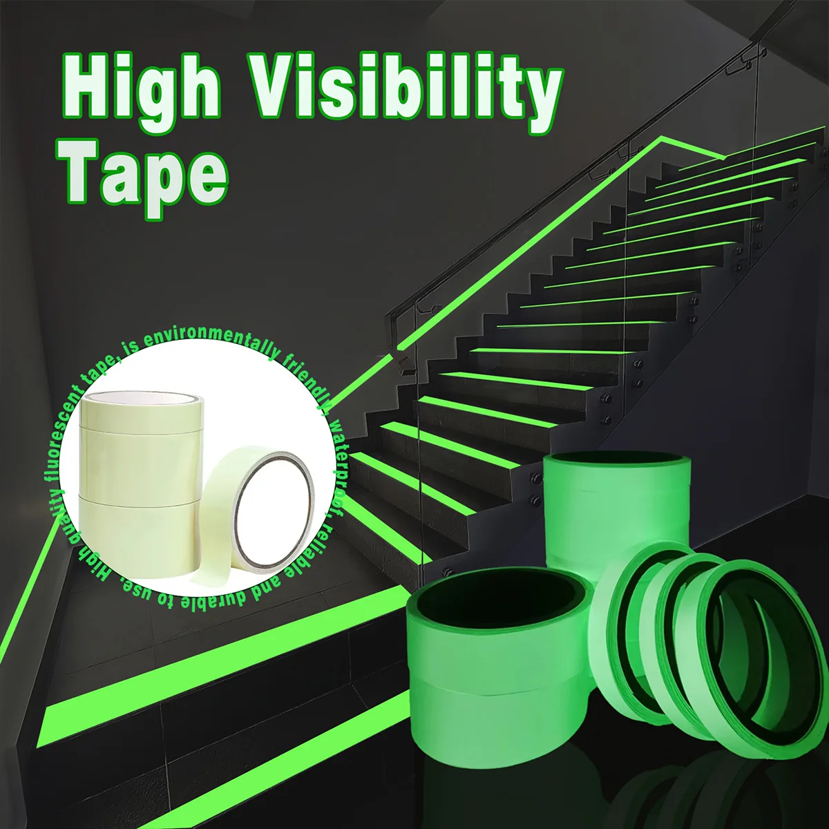 Nastro luminoso verde per avvertimento uscita scale Adesivi fluorescenti per illuminazione a terra per uso domestico e aziendale