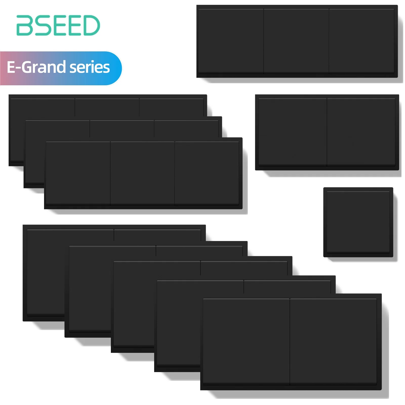 BSEED Serie E-Grand Set sfuso 1Gang 1Way Interruttore della luce a pulsante Cornice in plastica Interruttore della luce da parete On Off per scale Nero