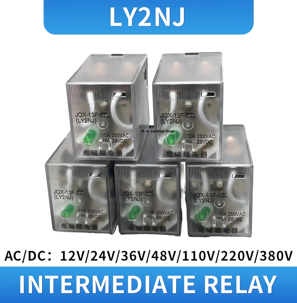 5PCS LY2NJ Bobina Relè di Potenza Auto AC 12V 24V 36V 48V 110V 220V 380V Mini Micro Relè Elettromagnetico interruttore 8Pin Modulo DPDT