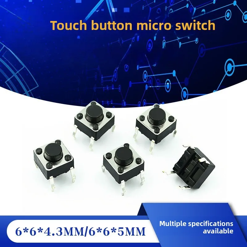 6x6x4.3MM 4PIN G89 Tattile Tatto Pulsante Micro Interruttore Direct Plug-in Auto-reset DIP Top Rame
