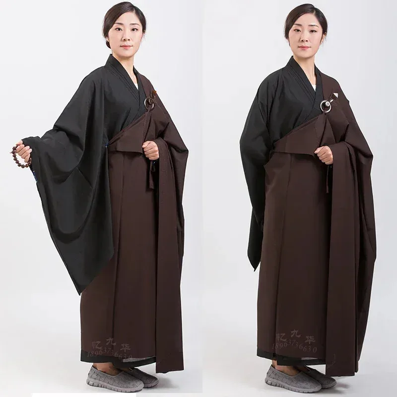 145-185Cm Vestaglie Mantello Per Adulti Monaco Haiqing Meditazione Vestiti Corda di Lino Confessione Abito Lungo Abbigliamento Buddista NM28