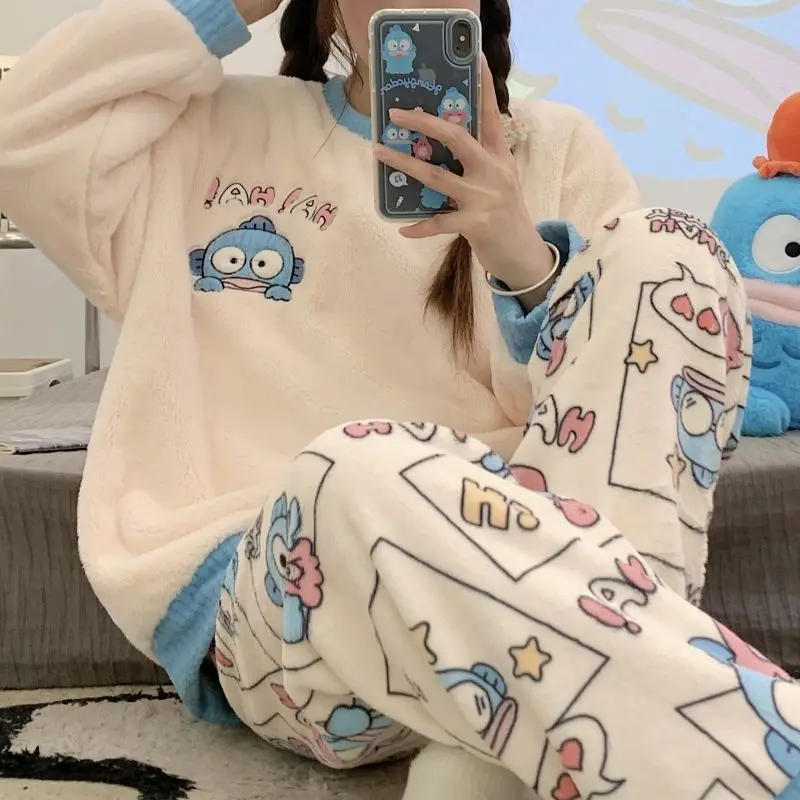 Pigiama da Donna Cinnamoroll Nuovo Hello Kitty, Abbigliamento Invernale in Velluto Corallo, Vestiti Caldi per Casa, Pigiama Cartoon Kuromi per Ragazze, Kawaii