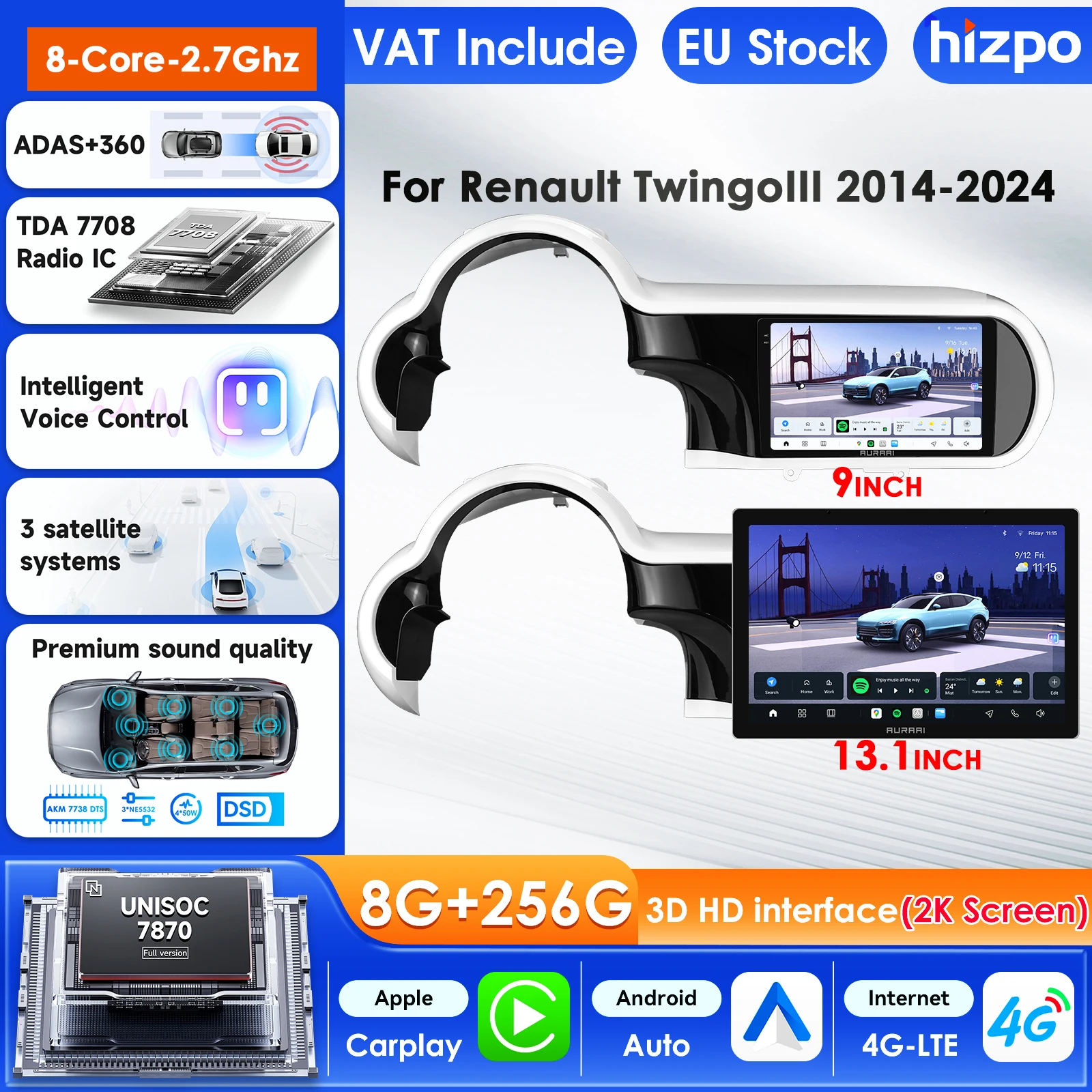 Hizpo 2Din Android Car Smart Screen AI Radio Lettore multimediale per Renault Twingo 3 III 2014 - 2024 Audio Carplay GPS Stereo