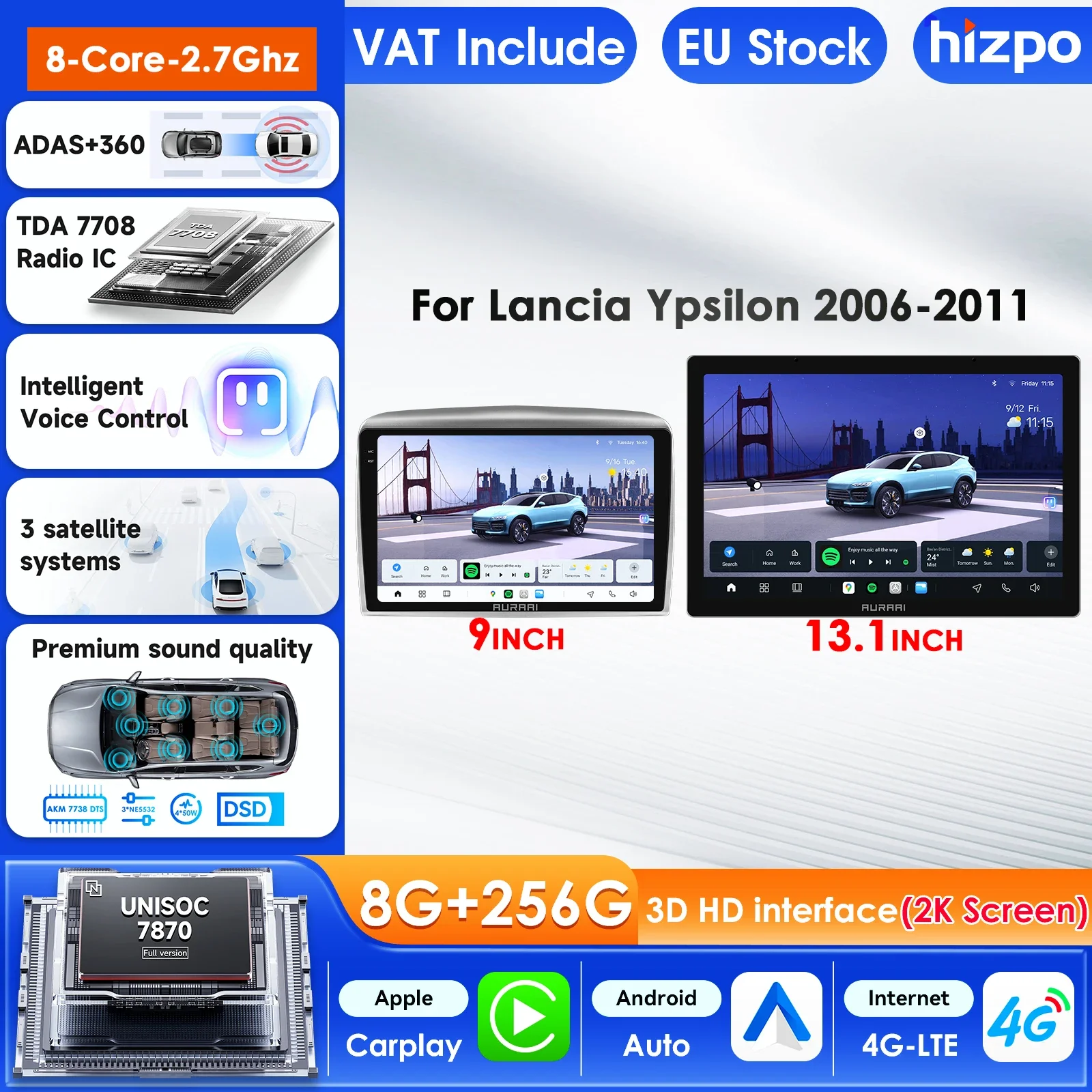 Hizpo 8GB + 256GB Schermo Intelligente Per Auto per Lancia Ypsilon 2006-2011 CarPlay Android Auto Radio GPS RDS 4G Multimediale Stereo WIFI