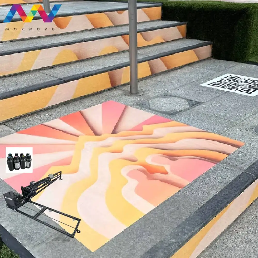 Stampante da pavimento 3D Macchina da stampa a getto d'inchiostro UV Strumento murale Penna da parete robot a colori CMYK per piastrelle da bagno Adesivo creativo per pavimenti in legno